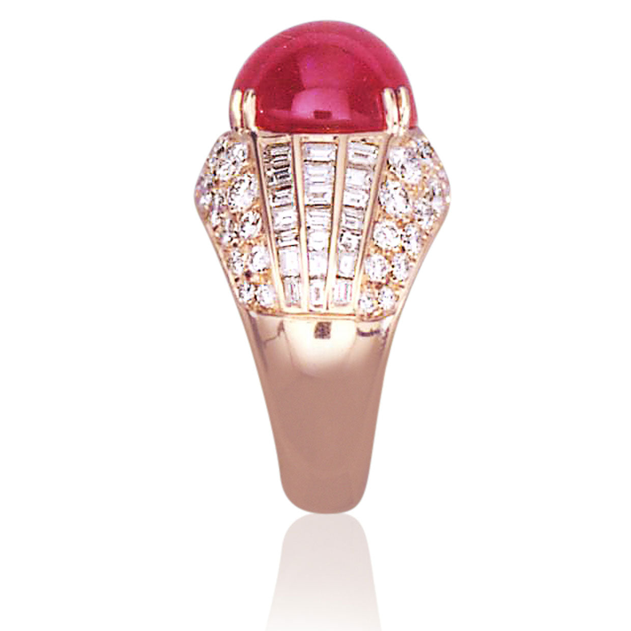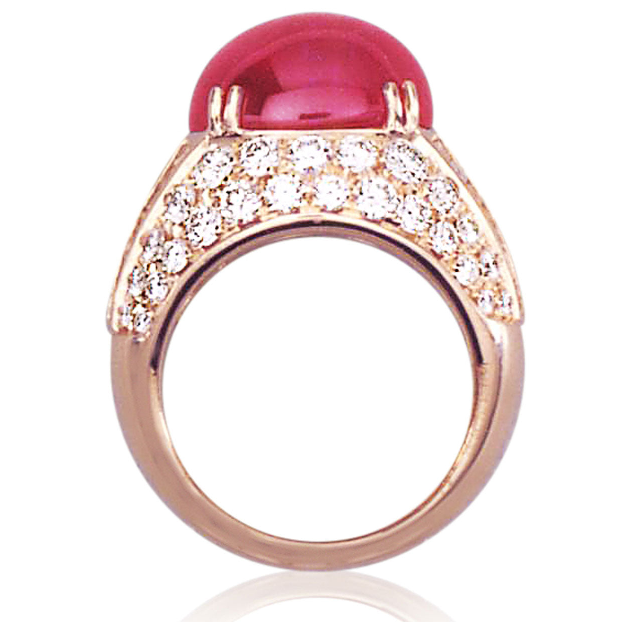 Picchiotti Oval Cabochon Burmese Ruby Ring with Diamonds in 18K Yellow Gold
