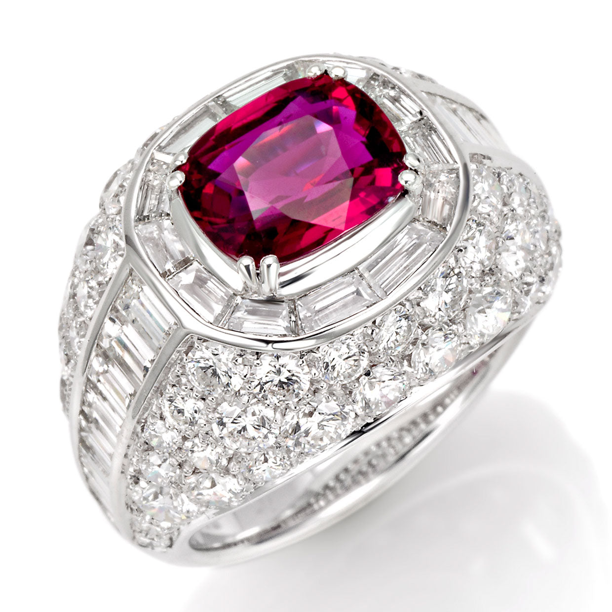 Picchiotti Cushion-Cut Unheated Ruby & Diamond Ring in 18K White Gold