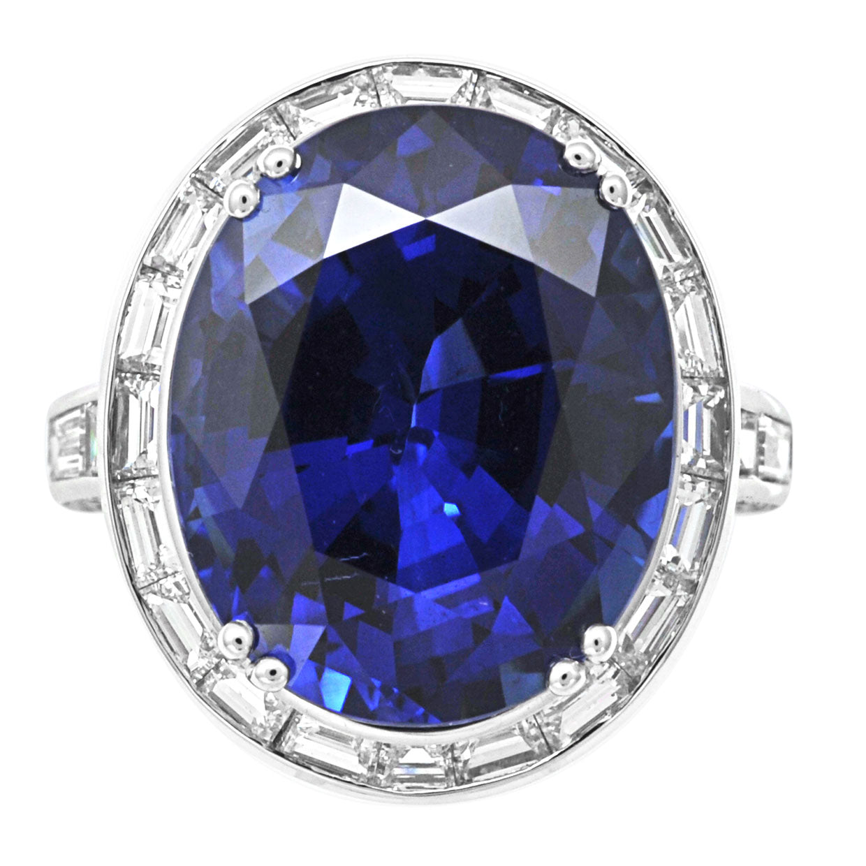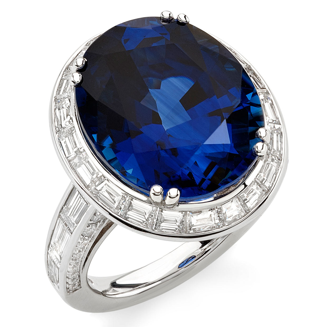 Picchiotti Oval Vivid Royal Blue Sapphire & Baguette Diamond Ring in 18K White Gold