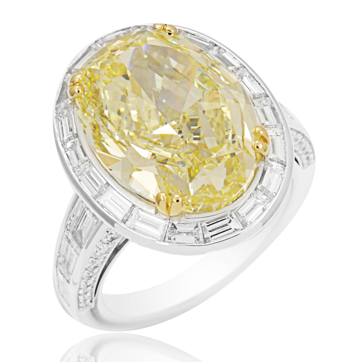 Picchiotti Fancy Yellow Oval Diamond Ring in Platinum & 18K Yellow Gold