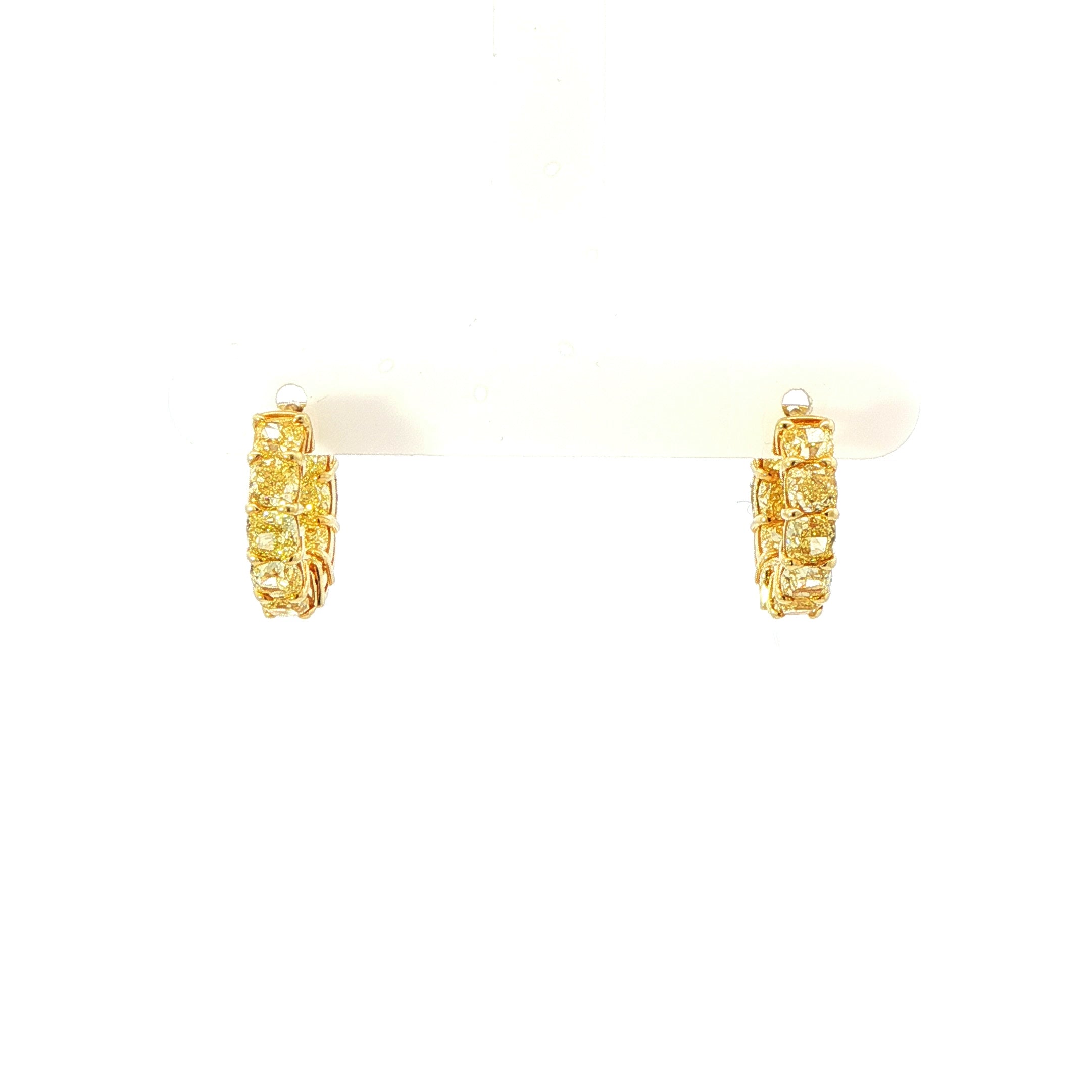 Cushion Cut Diamond Hoop Earrings in 18K Yellow Gold 4.65cttw