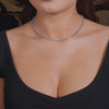 Sleek and architectural, this necklace features a continuous line of emerald cut diamonds set horizontally for a modern east west silhouette. The tailored channel design creates a smooth ribbon of light with refined high jewelry presence.