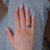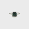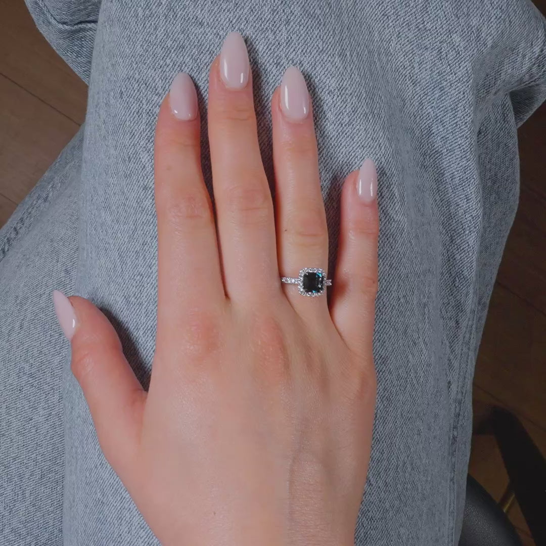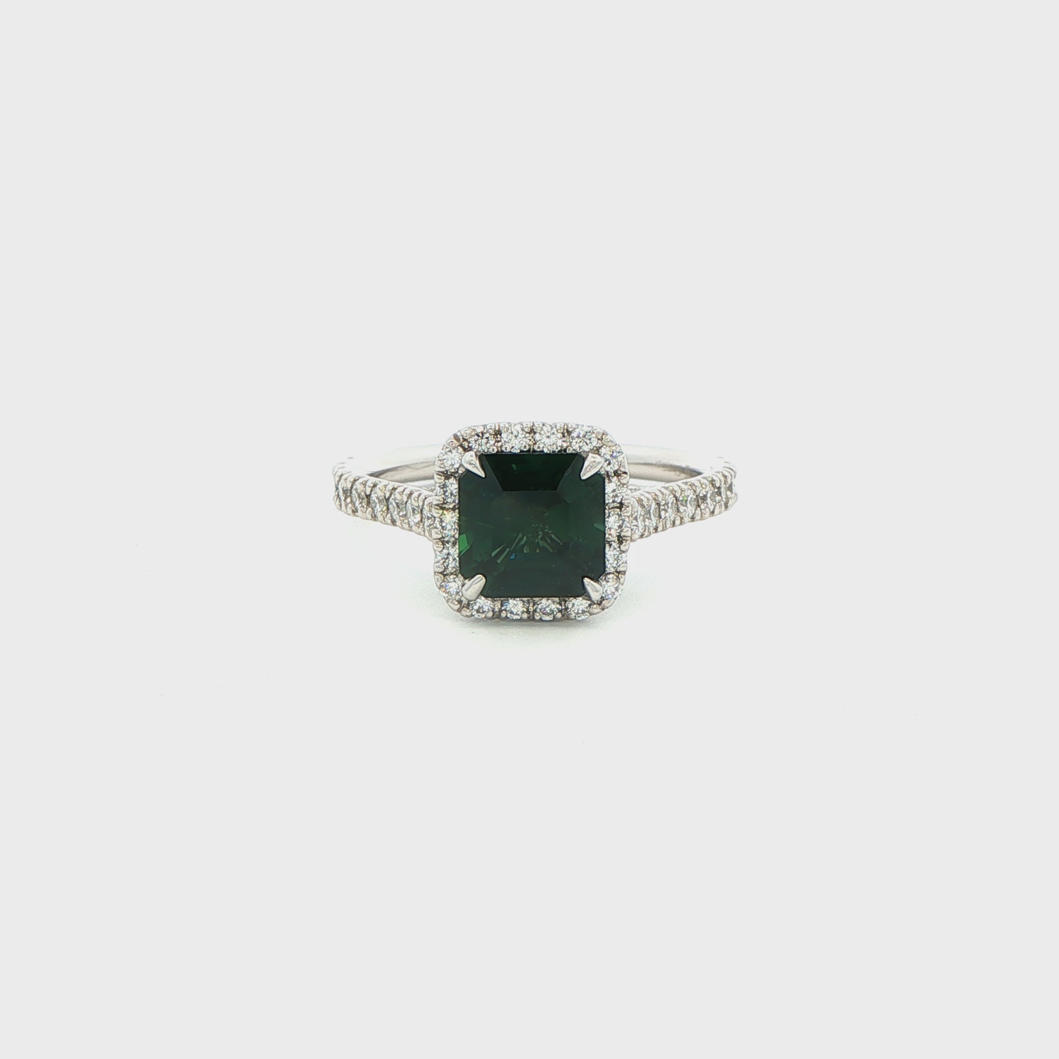 The emerald cut delivers elegant, mirror like flashes of light, while the halo enhances scale and presence without overwhelming the center stone. A sophisticated design that blends classic refinement with modern sparkle.