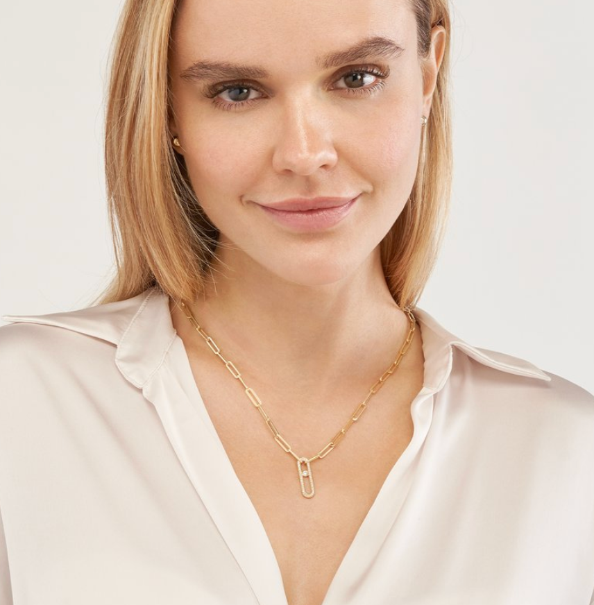 14K YELLOW GOLD PAPER CLIP CHAIN WITH .25CTTW DIAMONDS