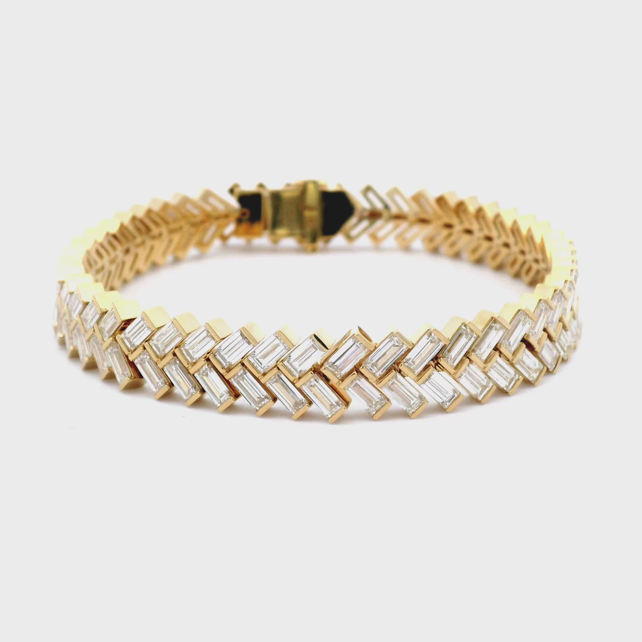 Elevate your style with our 18K Yellow Gold and Diamond Modern Empire Bracelet. Crafted from premium materials and featuring delicate and intricate design, this bracelet exudes sophistication and luxury. The perfect accessory for any occasion, it is a must-have for any fashion-forward individual seeking to make a statement.