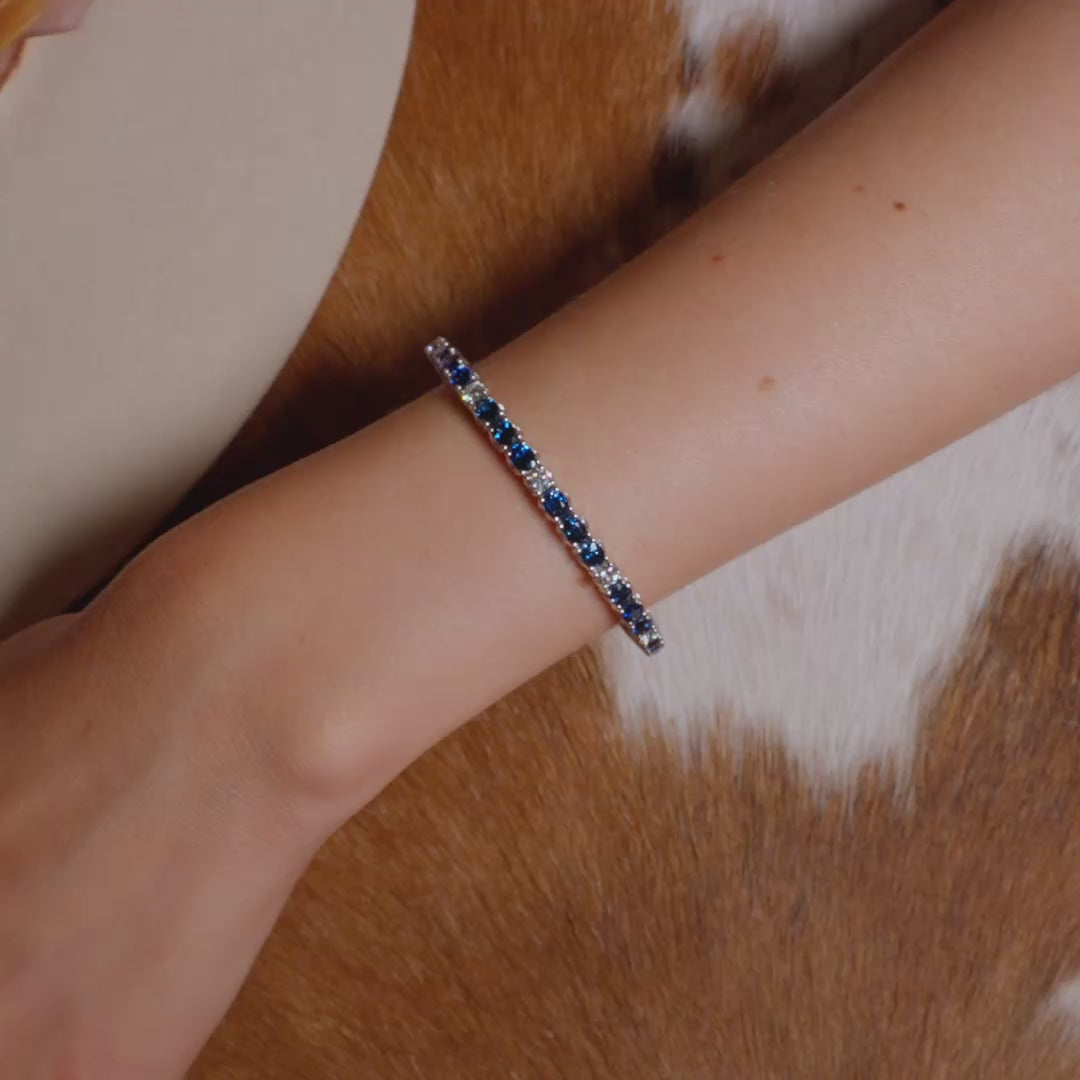 Elevate your style with the Picchiotti Xpandable™ Sapphire and Diamond Bracelet. Crafted in luxurious 18K white gold, this bracelet features a radiant mix of oval sapphires and brilliant round diamonds. The vibrant color contrast and refined sparkle make it an exceptional piece for both everyday elegance and special occasions. With Picchiotti’s signature Xpandable™ design, it slips on smoothly and fits comfortably no clasp, no resizing.