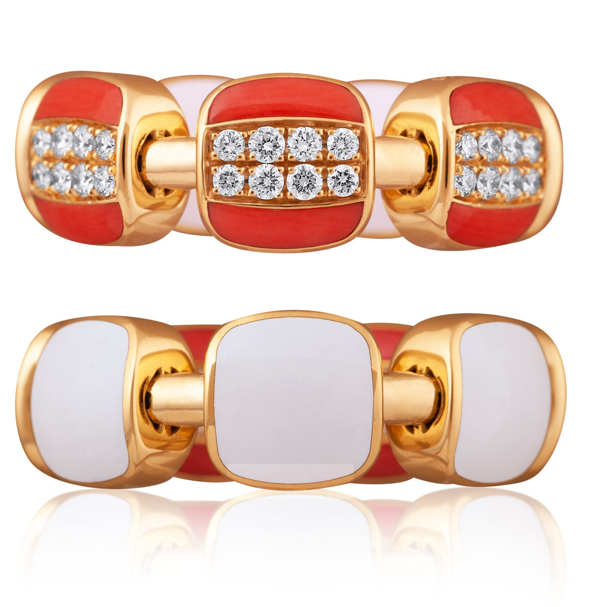 Picchiotti - Xpandable™ Red Coral, White Ceramic & Diamond Ring in 18K Rose Gold