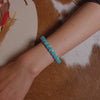 A bold pop of turquoise, balanced with brilliant sparkle and flexible comfort. The perfect finishing touch for elevated everyday or standout styling.