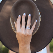 Like a trip to Jackson Hole, this stack of three rings is an instant classic. The white gold 18K bands and diamond pave make this trio our most elegant rendering of the Teton mountains and a beautiful beginning to your stacking ring collection.