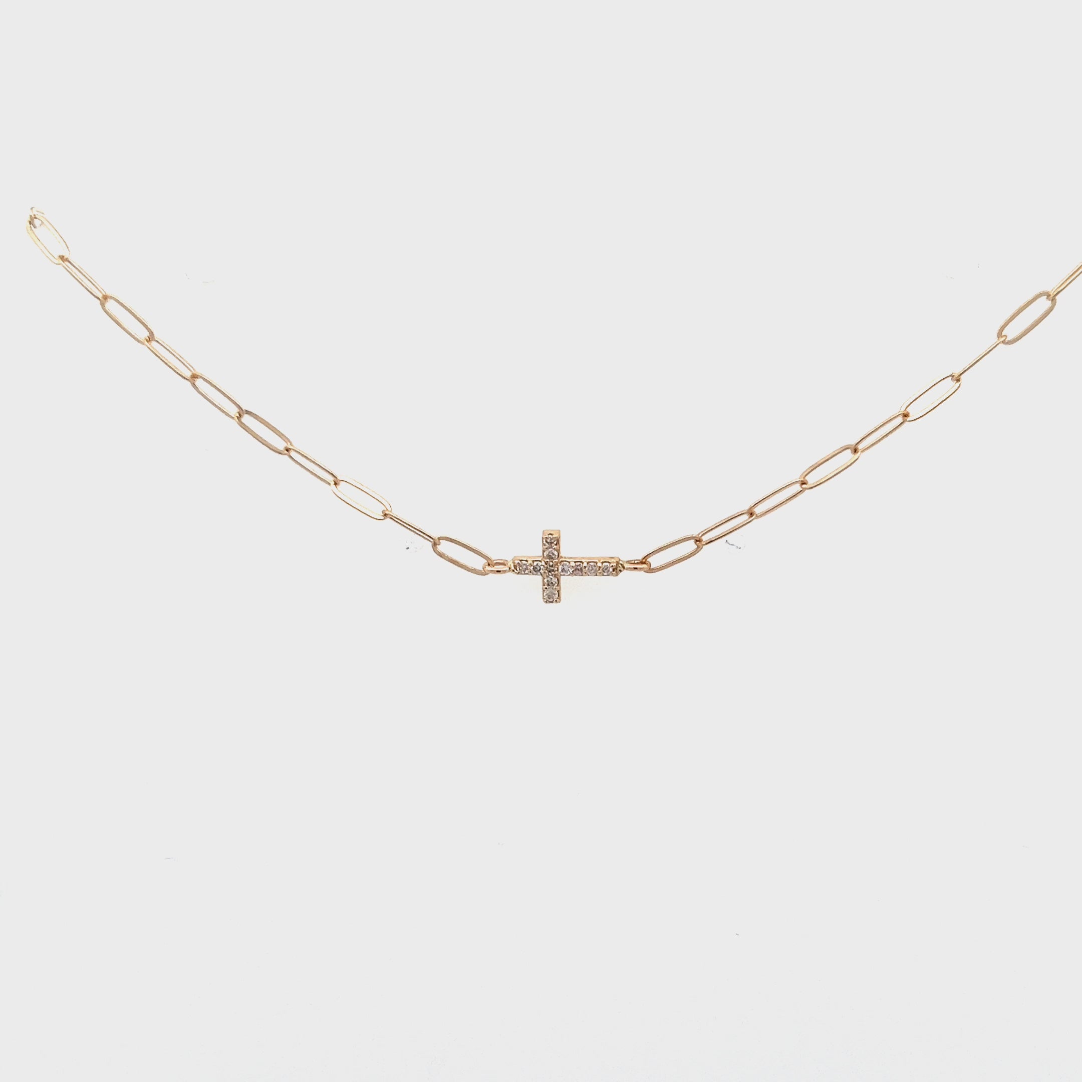 LOVE LETTER DIAMOND PAVÉ CROSS BRACELET 14K YELLOW GOLD