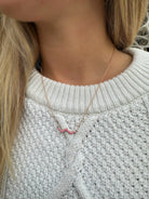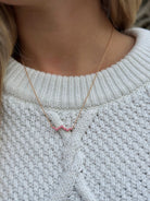 A symbol of beauty and courage, the Teton Outline Necklace with Pink Enamel honors the strength of women during Breast Cancer Awareness Month.