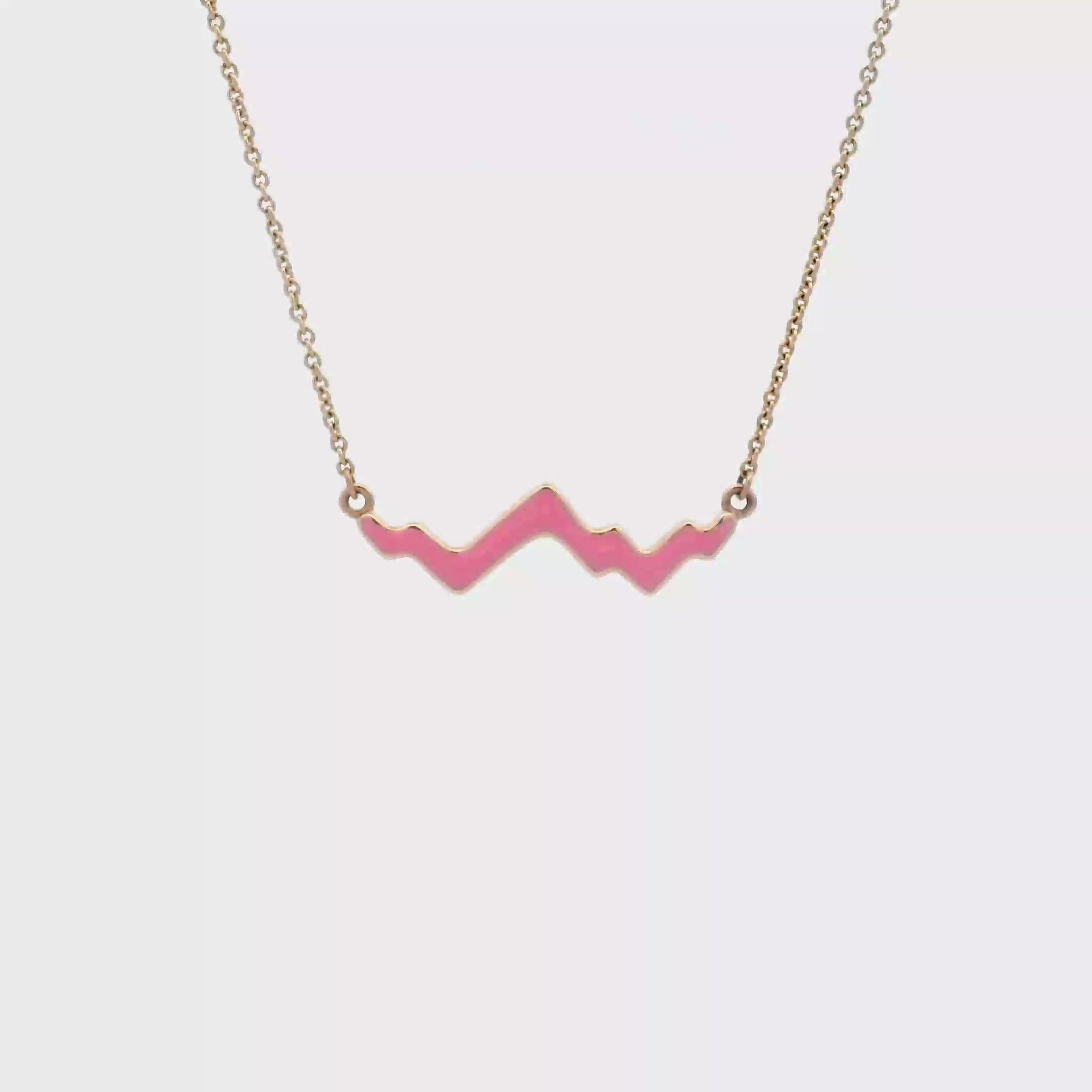 Teton Outline Necklace with Pink Enamel in 14K Rose Gold