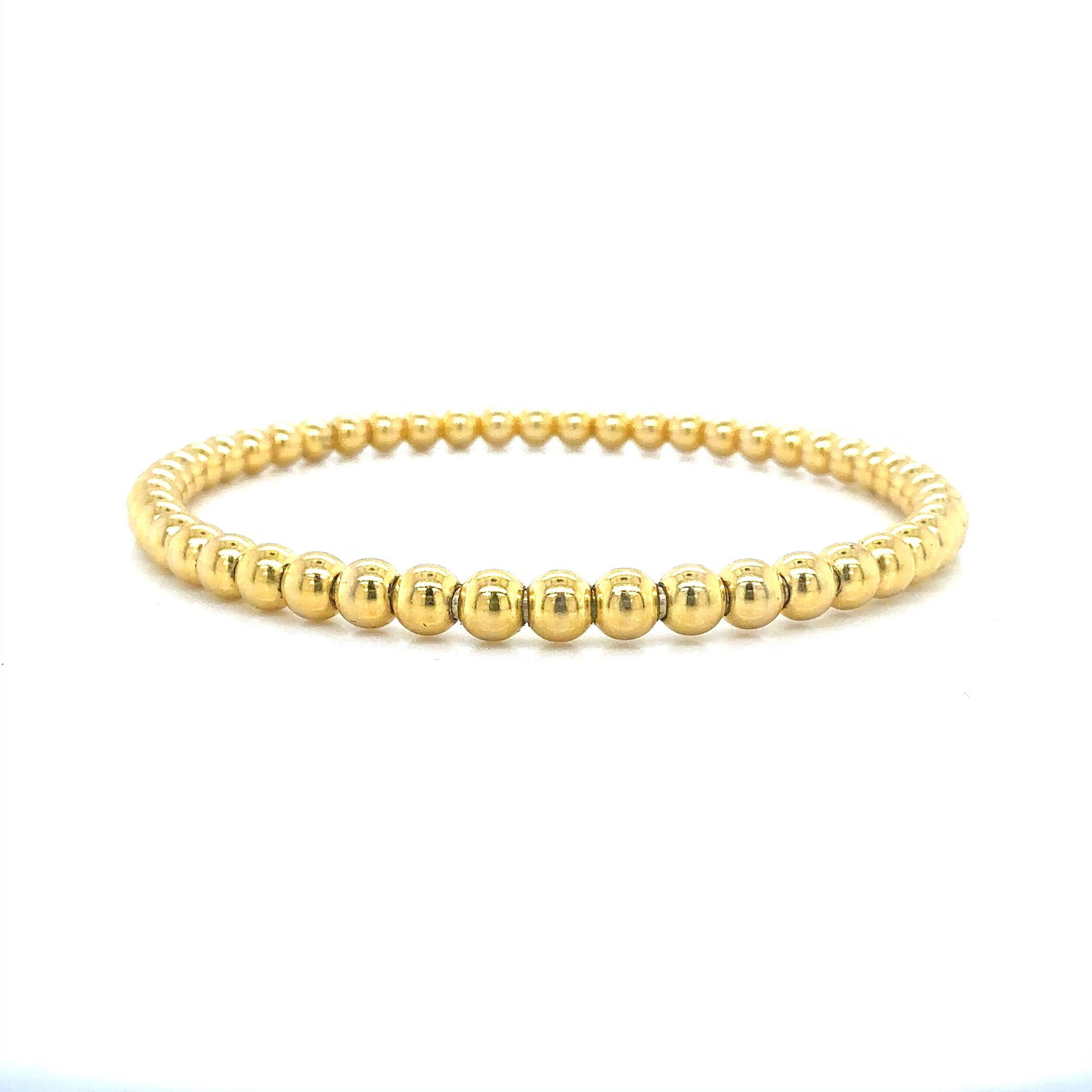 Simple, chic, and effortlessly stylish, this 14K yellow gold beaded stretch bracelet is a timeless essential. The polished gold beads offer a classic look with a modern, easy-to-wear design. Perfect for stacking or wearing solo, it adds a touch of warm elegance to any jewelry collection.