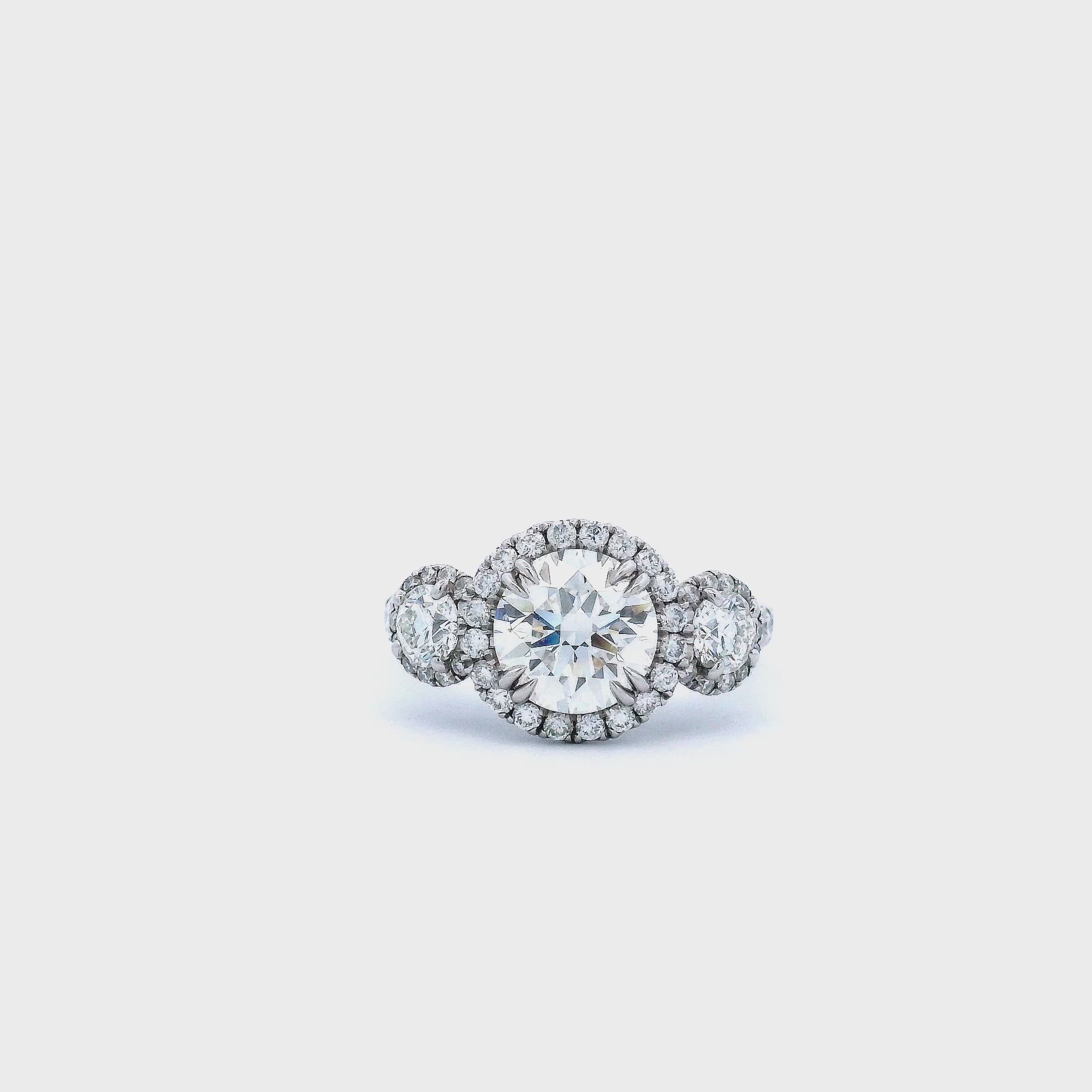 Indulge in ultimate luxury with our Platinum 3 Stone Halo Ring. The exquisite platinum band boasts a stunning triple stone halo design that exudes elegance and sophistication. Elevate any outfit with this timeless piece that will surely make a statement.