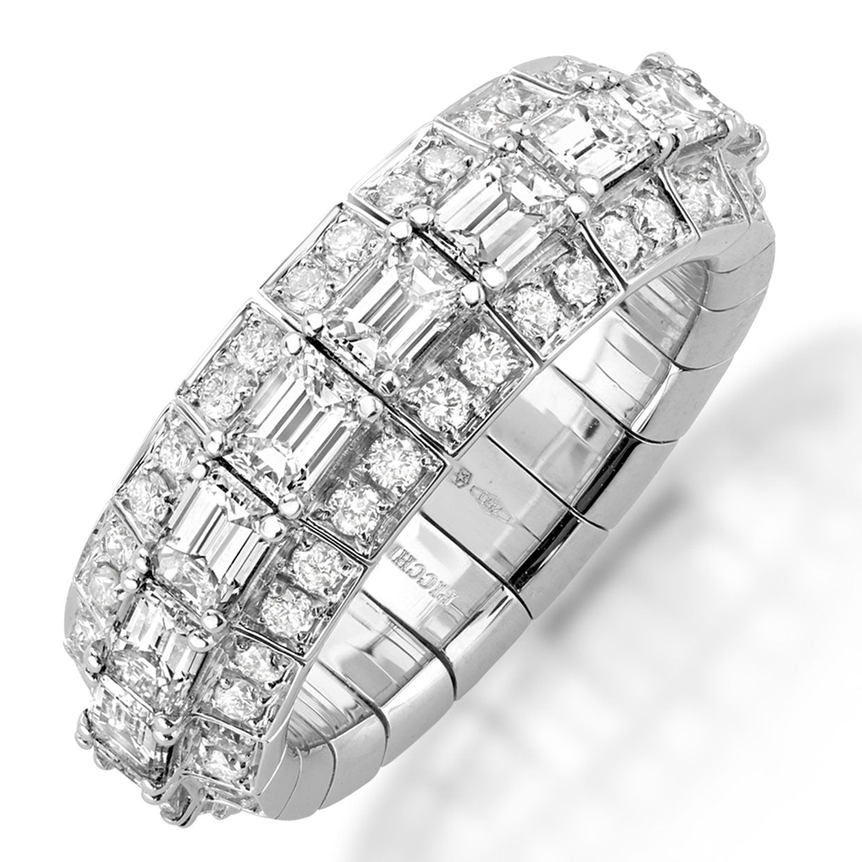 Indulge in luxury with the Picchiotti Xpandable™ Emerald Cut and Round Eternity Diamond Ring. Expertly crafted in 18K white gold, this exquisite piece features alternating emerald cut and round diamonds in a continuous, elegant band. The innovative Xpandable™ mechanism ensures a seamless, comfortable fit—no resizing needed. A timeless design perfect for stacking or wearing solo, it brings a refined brilliance to any occasion.