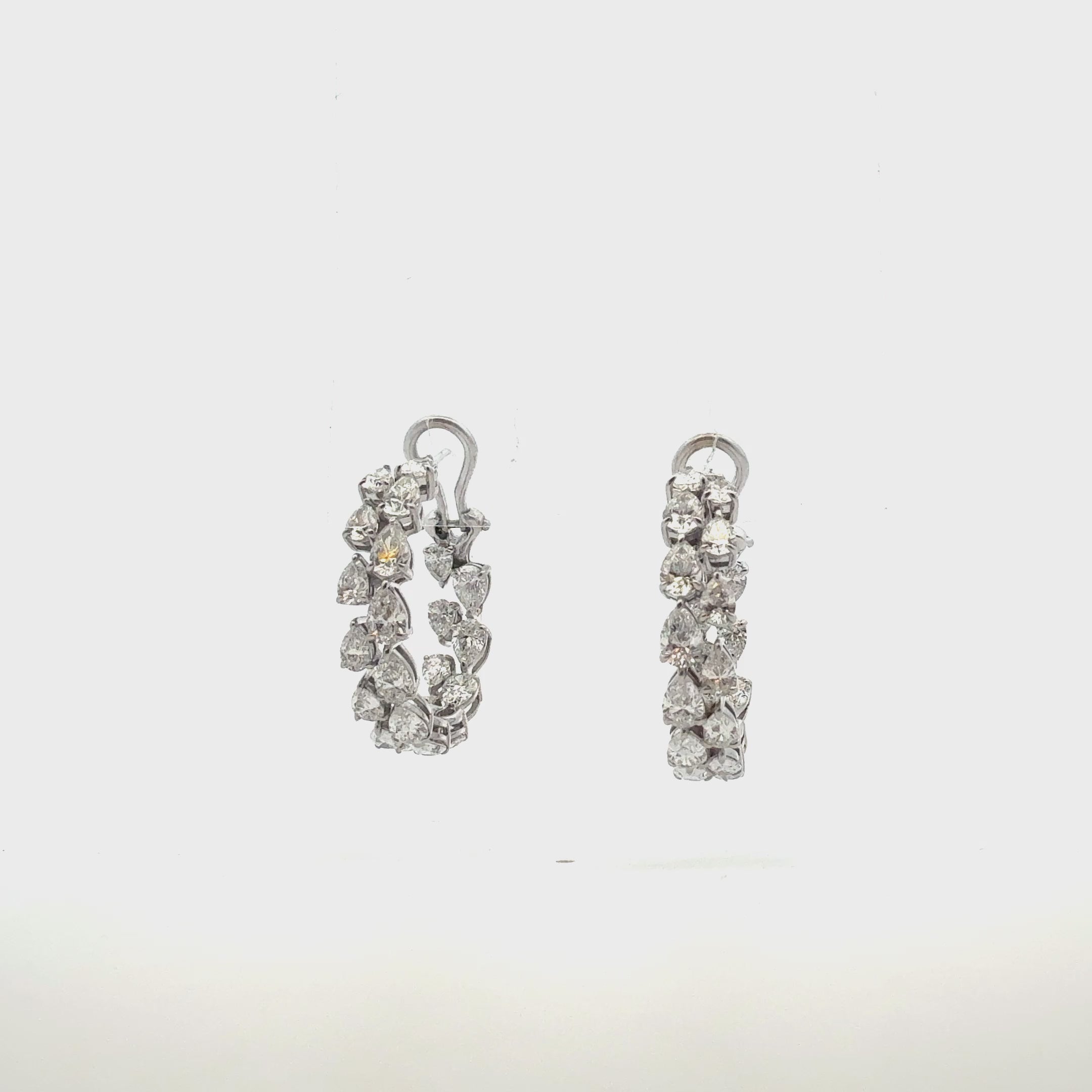 These dazzling diamond drop earrings feature 44 pear-shaped diamonds, totaling 6.21 carats, each averaging 0.20 carats. Expertly set in luminous 18K white gold, the diamonds exhibit exceptional G–H color and SI clarity, creating a cascade of light and sparkle with every movement.