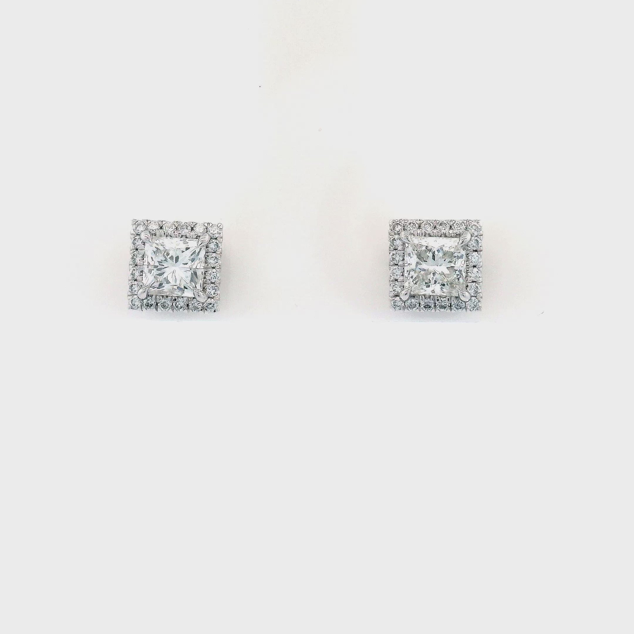 Enhance your everyday elegance with our dazzling Halo Stud Earrings. Crafted in 18K white gold, they feature a square design and a halo of sparkling diamonds, adding a touch of luxury to any outfit. Elevate your style with these timeless and sophisticated earrings.