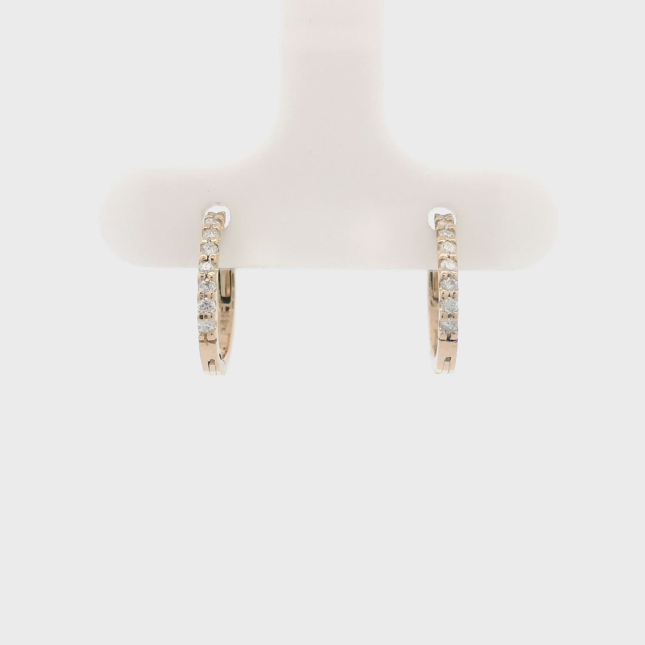 Dazzling pavé diamonds are encrusted in a rich yellow gold prong setting.These light weight dainty hoops can be worn for any occasion.