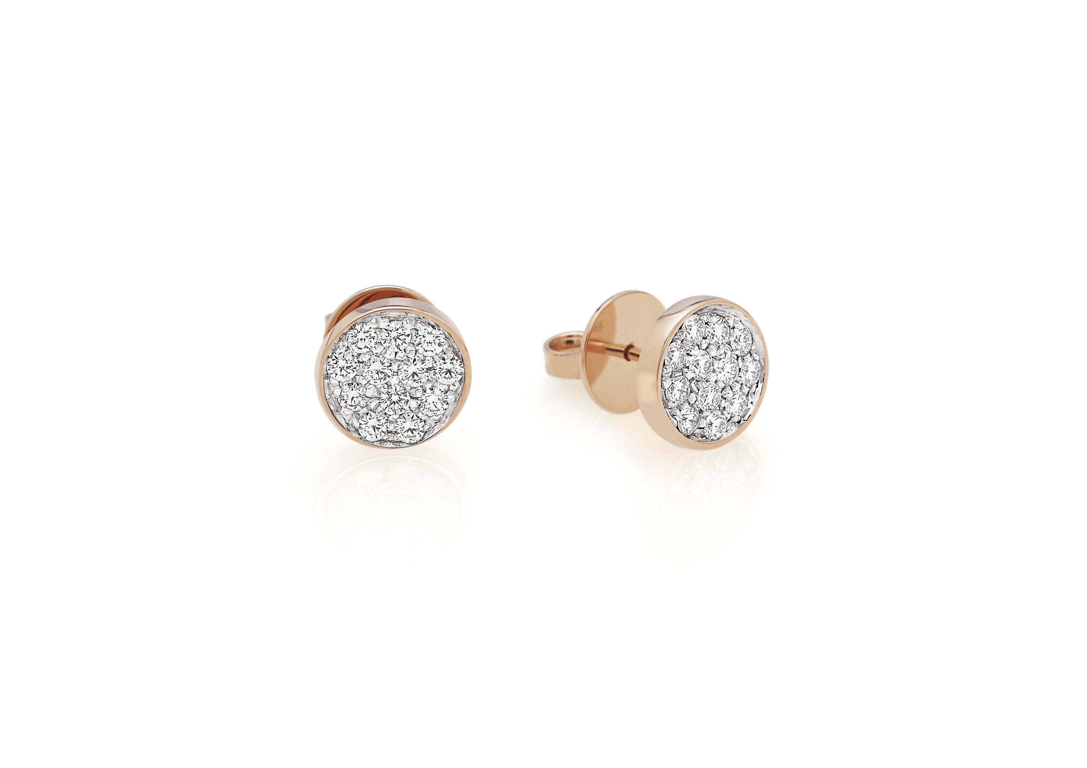 CHANTECLER CAPRITUDE PAILLETTES 18K ROSE GOLD 10MM LOBE EARRINGS WITH DIAMONDS PAVÉ