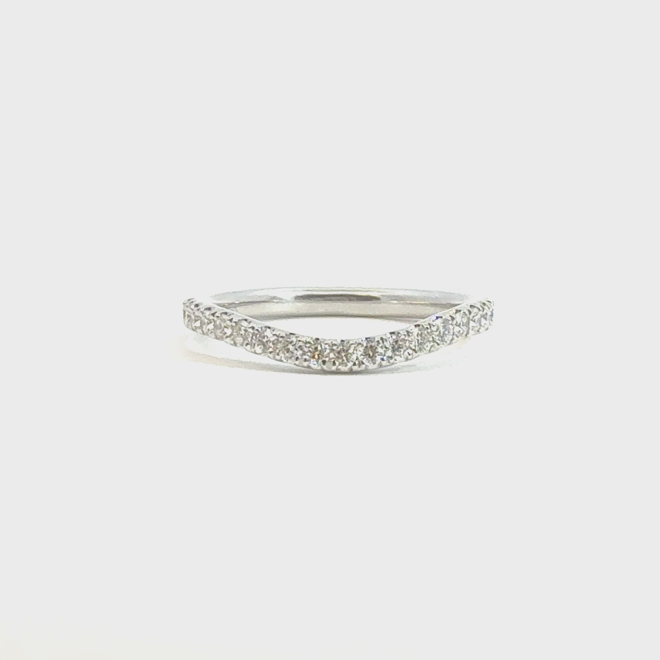 Graceful Curves. Brilliant Sparkle. The unique wave silhouette adds a modern twist to the classic diamond band, making it perfect as a wedding band, anniversary ring, or stylish stacking piece. Its refined design pairs beautifully with engagement rings or other bands for a personalized look.