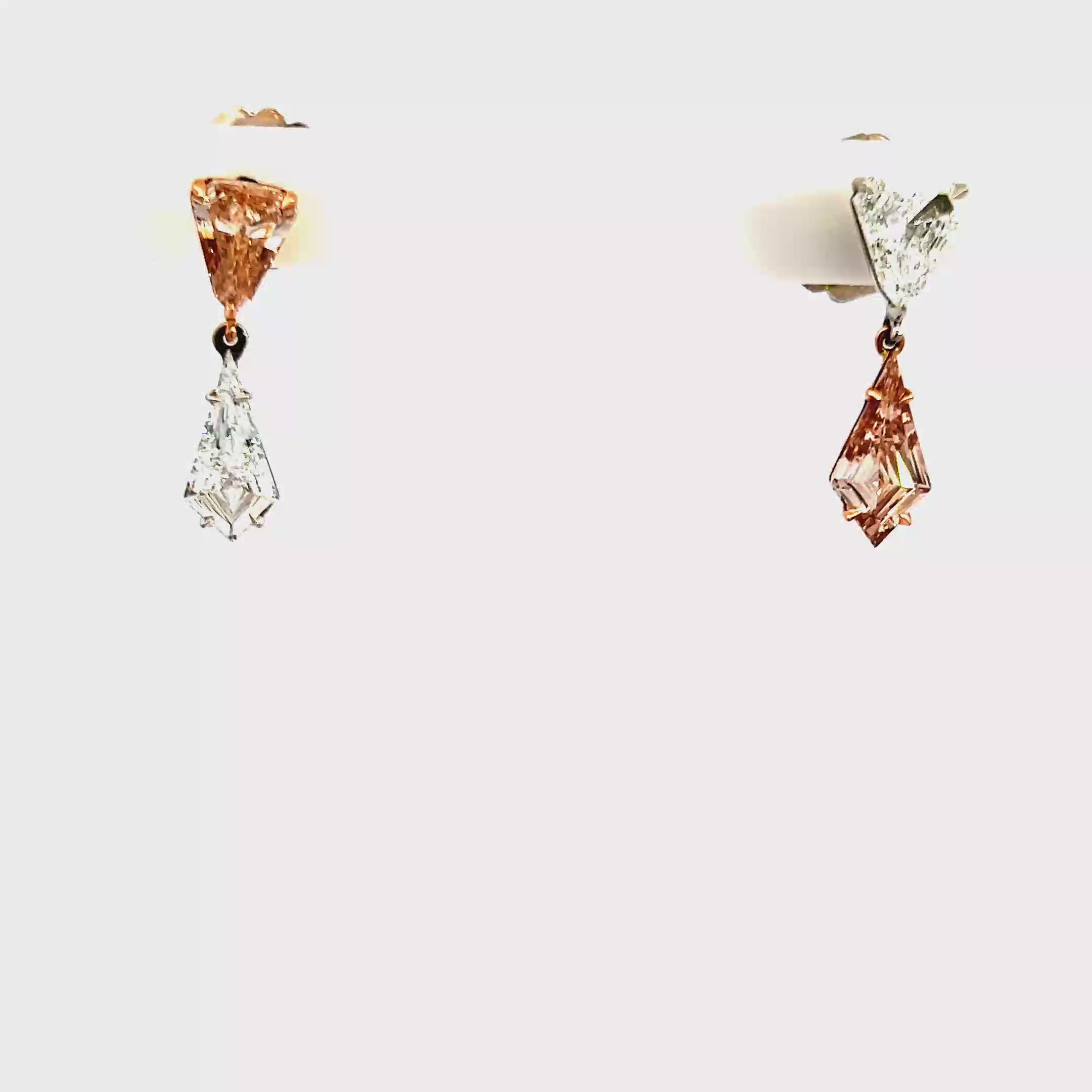 These exquisite Diamond Drop Earrings combine the warmth of 14K rose gold with the refined strength of platinum in a graceful, sculptural silhouette. Featuring four stunning shield- and kite-shaped diamonds, each pair boasts a total weight of 2.75 carats, offering brilliant movement and captivating sparkle with every turn.