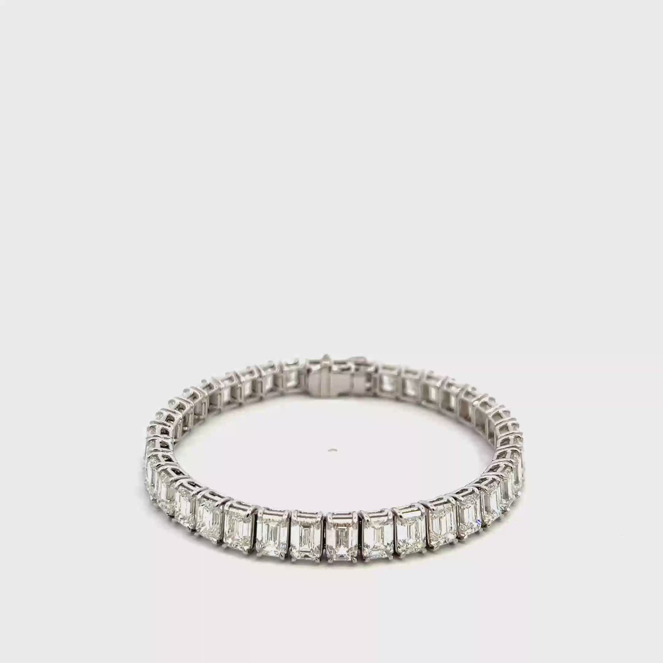 This Platinum Tennis Bracelet is the pinnacle of sophistication—featuring 37 meticulously matched emerald-cut diamonds, each hand-selected for exceptional quality. With a total diamond weight of 26.29 carats GIA, this bracelet radiates clarity, precision, and timeless refinement.
