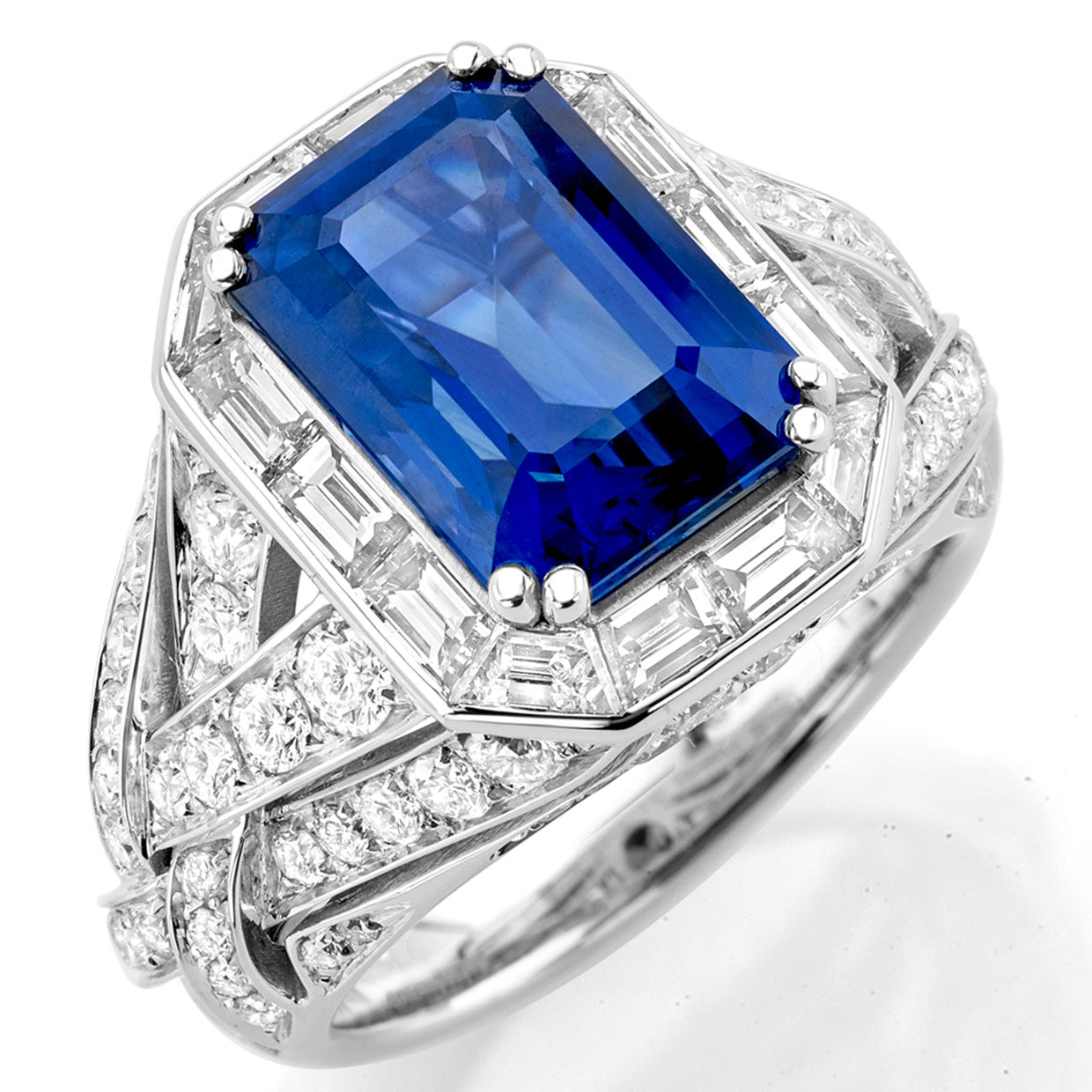 - Center Stone: Emerald-Cut Tanzanite (GIA certified), 11.80 cttw