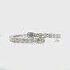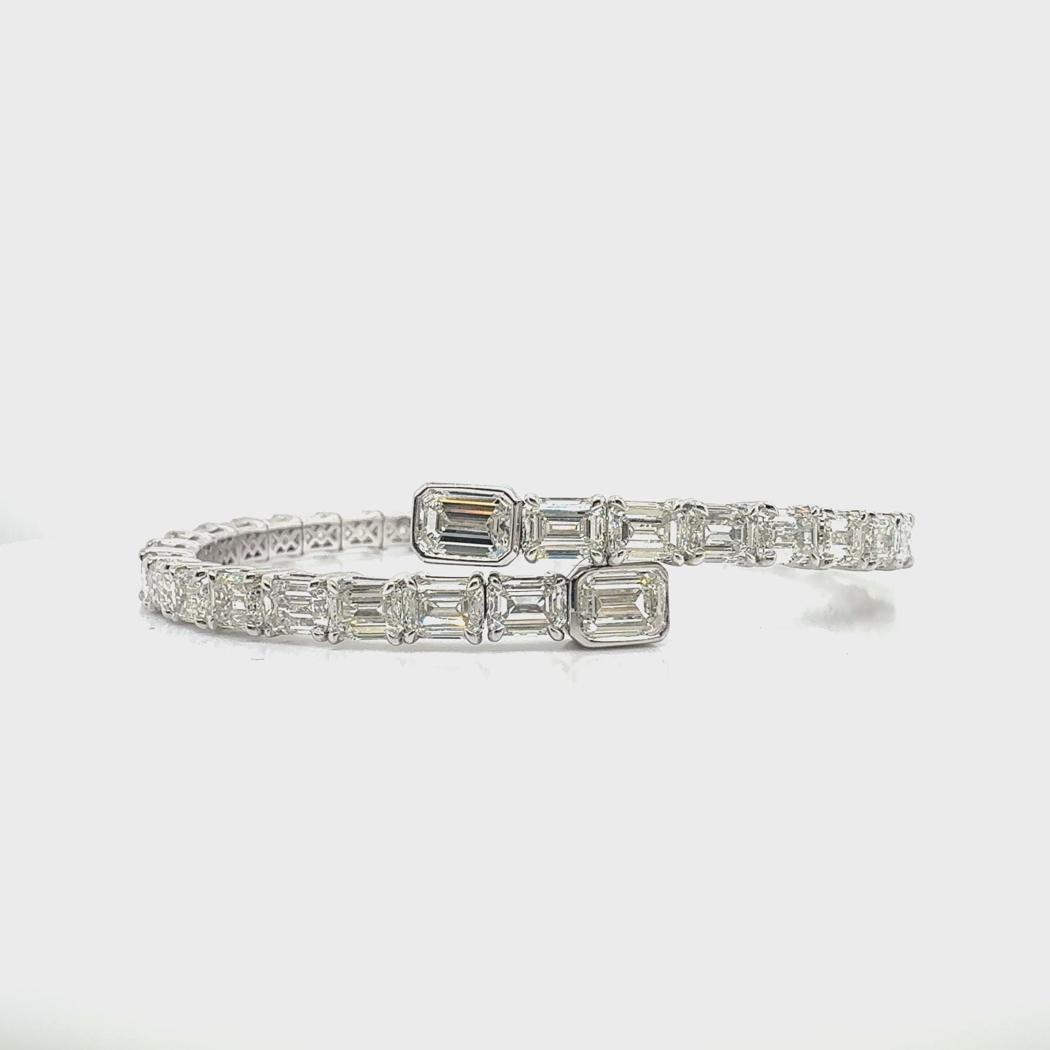 Elevate your elegance with this 18K white gold diamond bangle, featuring 36 prong-set emerald-cut diamonds, accented by 2 additional diamonds. Delicate bezel-set diamond tips (0.81/0.80 CTTW) add refined sparkle and sophistication. Each diamond boasts I color and VVS2–VS1 clarity, reflecting brilliant light from every angle. Perfect for layering or wearing as a statement piece, this bangle combines timeless luxury with modern glamour.