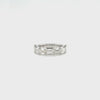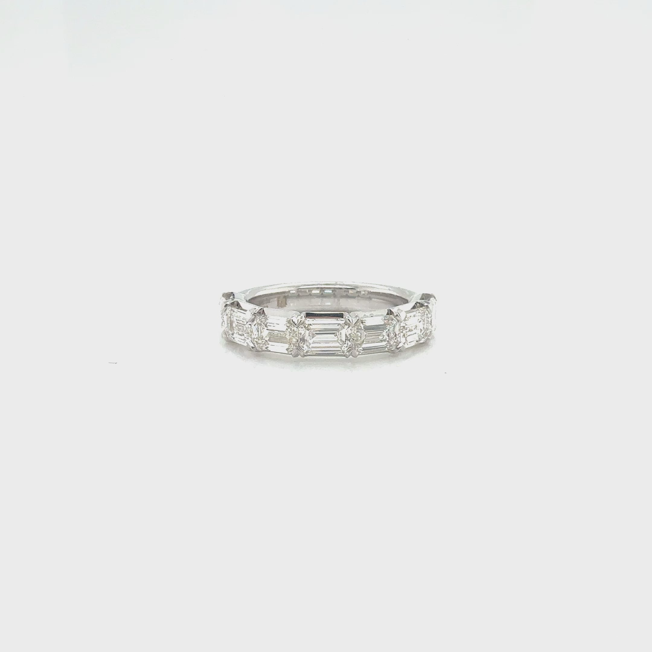 Sculptural Design. Modern Elegance. Crafted in radiant 18K gold, this Geo Band features a bold arrangement of emerald-cut diamonds totaling 2.85 carats. The half-way design highlights the clean lines and step-cut facets of the stones, each graded F–G color and VS clarity, creating a refined balance of brilliance and geometry. This ring’s structured silhouette and three-eighths width offer both presence and comfort, making it perfect as a statement band, anniversary ring, or sophisticated stacking piece.A striking blend of architectural form and timeless luxury, this emerald cut diamond band embodies bold sophistication with everyday wearability.