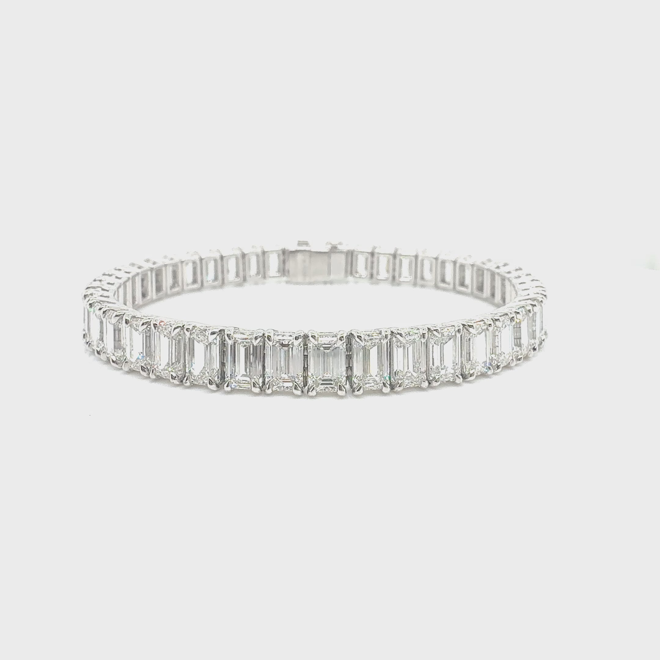Elevate your elegance with this platinum straight-line tennis bracelet, featuring 44 GIA-certified D–F IF–VS2 emerald-cut diamonds totaling 22.68 CTTW. Each diamond is prong-set to create a seamless line of brilliance, offering timeless sophistication and modern luxury. Perfect for special occasions or as a stunning everyday statement piece.