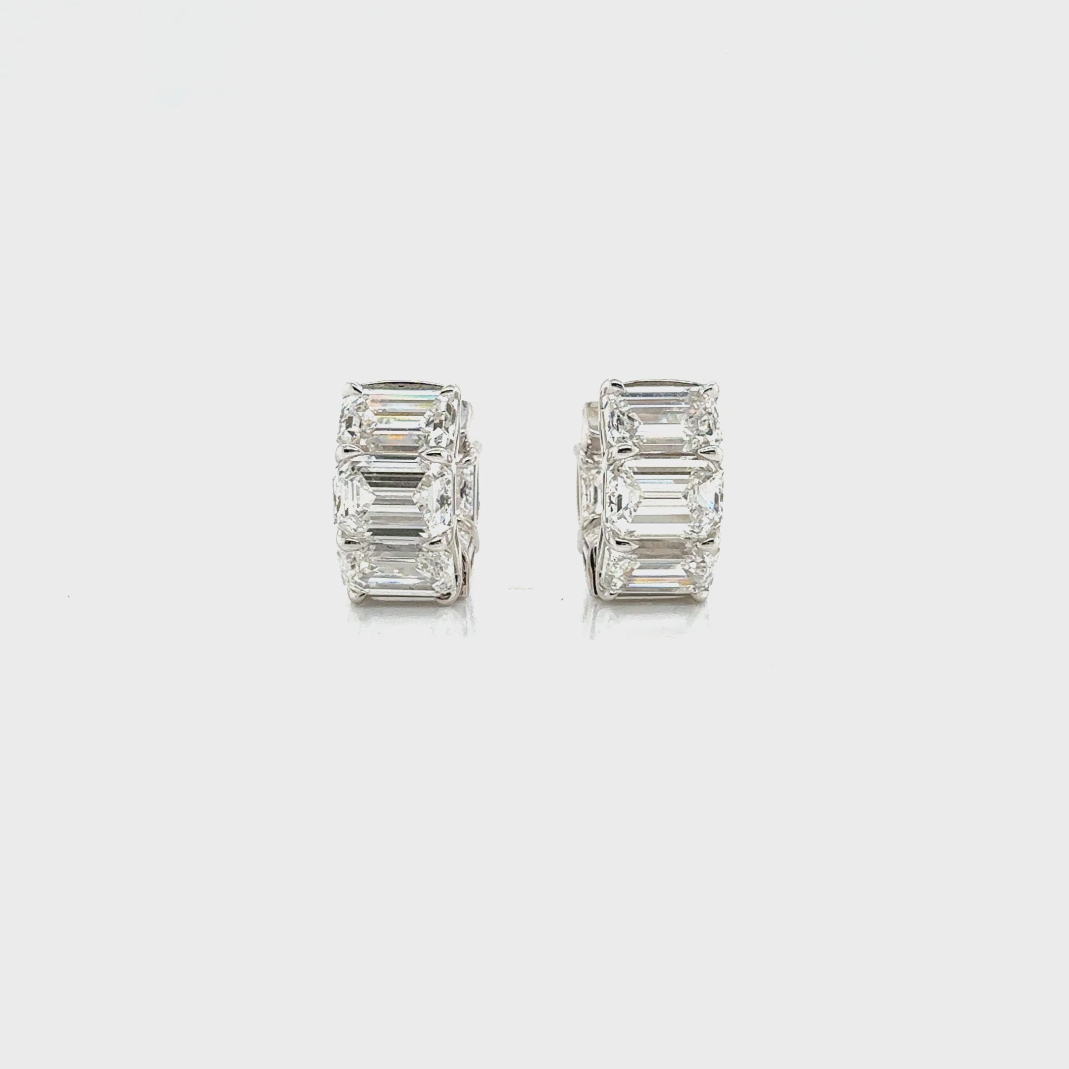 Make a statement with these luxurious 18K white gold hoop earrings, each featuring 5 exceptional emerald-cut diamonds totaling 10.15 carats. With a color grade of E-F and clarity of IF-VS1, these diamonds showcase remarkable brilliance and clarity, reflecting light with unmatched sparkle.