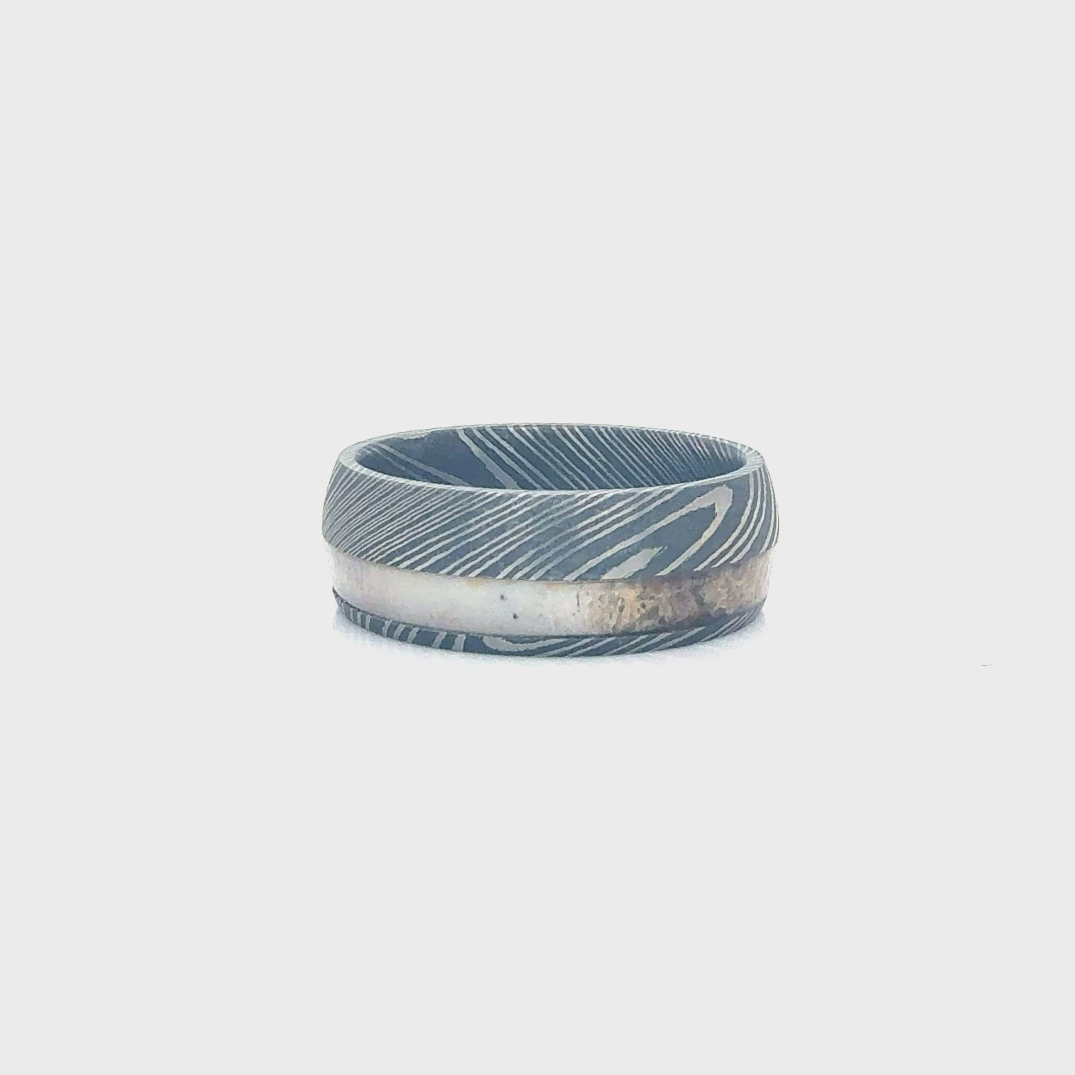 Men’s Damascus Ring with Antler Inlay and Acid Finish