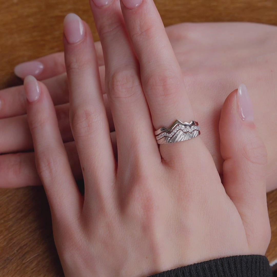 Like a trip to Jackson Hole, this stack of three rings is an instant classic. The white gold 18K bands and diamond pave make this trio our most elegant rendering of the Teton mountains and a beautiful beginning to your stacking ring collection.