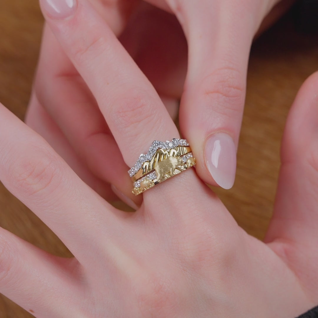 A tribute to the legendary matriarch of the Tetons, Grizzly 399. Crafted in radiant 18k gold with a soft brushed finish, this ring embodies strength, grace, and legacy.