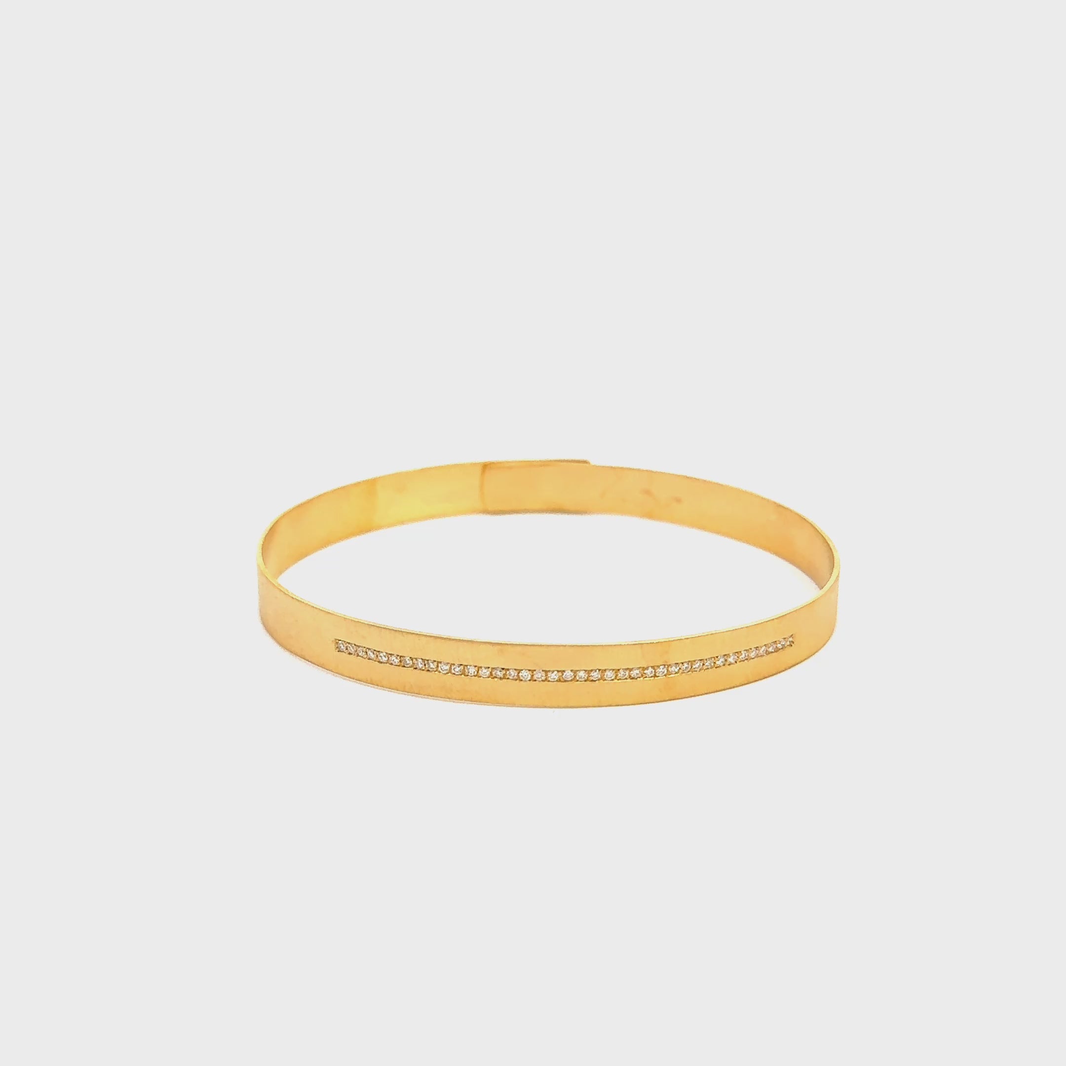 This refined 14K yellow gold bangle bracelet is accented with 0.19 carats total weight of round brilliant cut diamonds, adding a touch of shimmer to its sleek, timeless silhouette. Lightweight yet luxurious, it’s perfect worn solo for understated elegance or stacked with other bangles for a more contemporary, layered look.