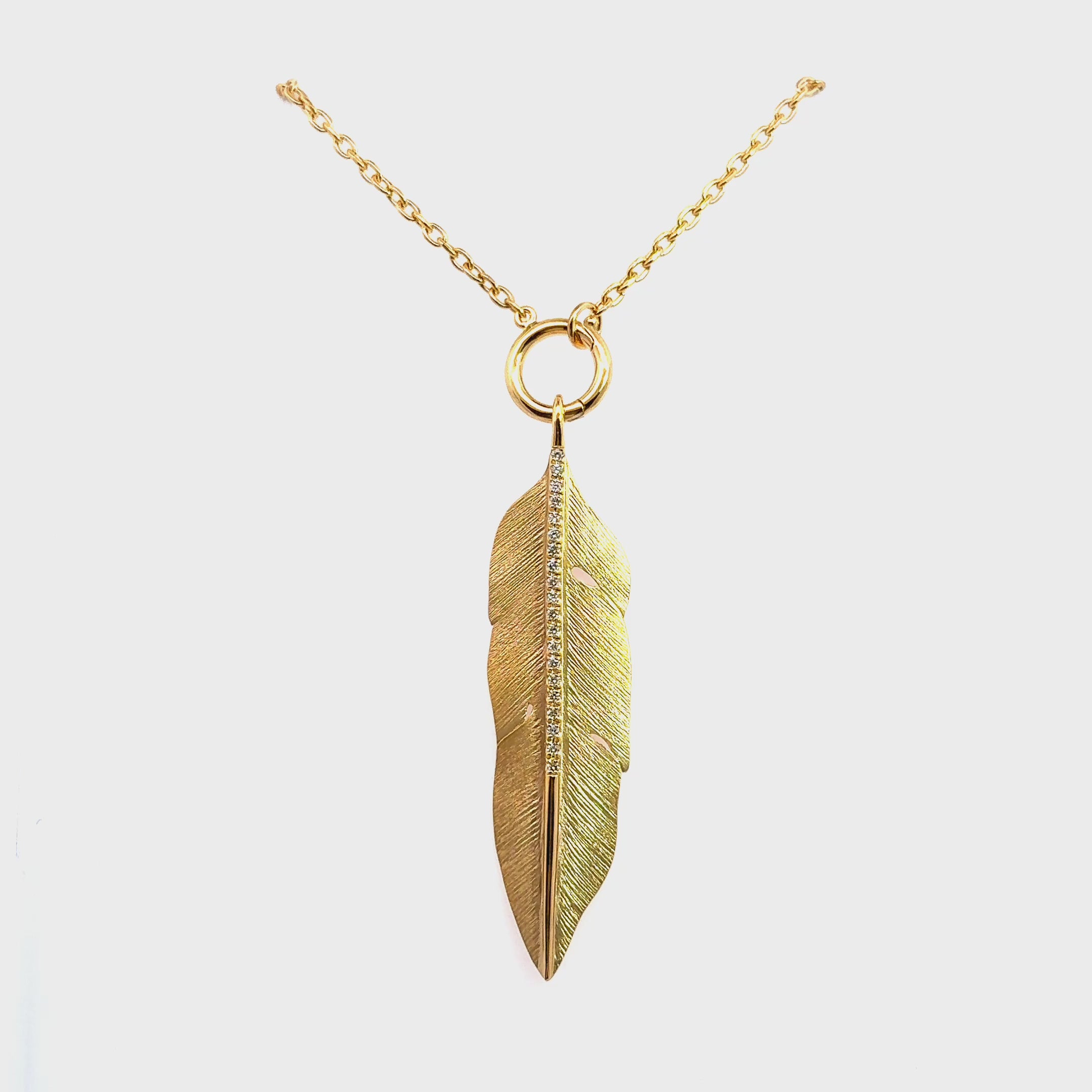 Feather Pendant in 14K Yellow Gold with Diamonds.