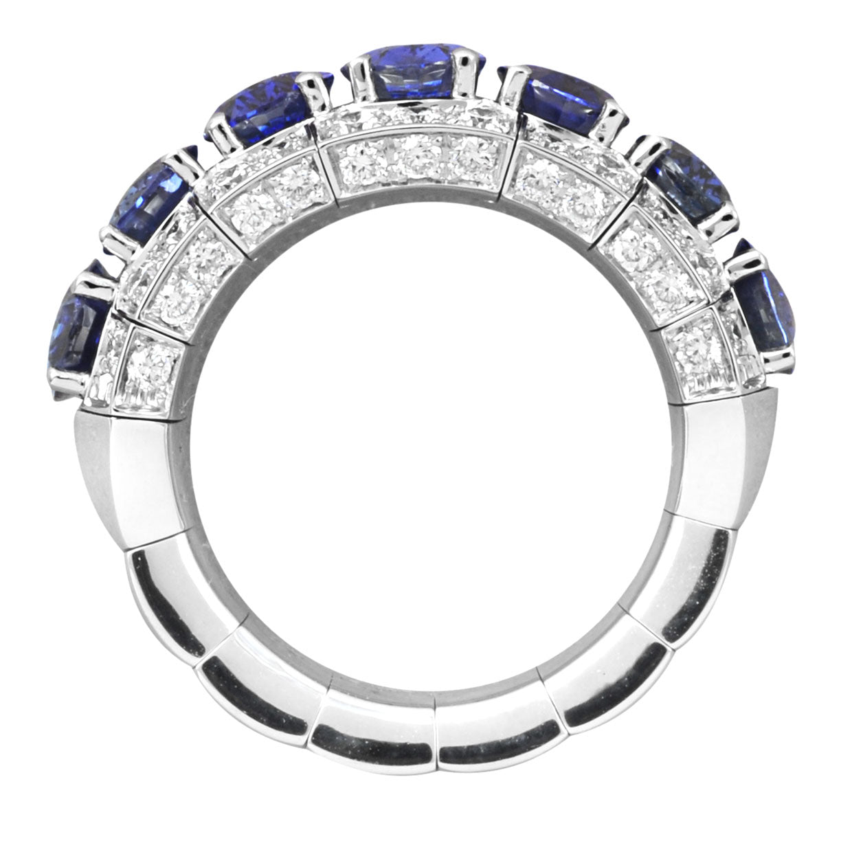 Indulge in refined elegance with the Picchiotti Xpandable™ Half-Way Ring. Featuring a captivating row of deep blue oval sapphires accented by brilliant white diamonds, this luxurious ring is crafted in 18K white gold. The innovative Xpandable™ mechanism ensures a seamless, comfortable fit—no resizing needed. A radiant blend of Italian craftsmanship and modern versatility.