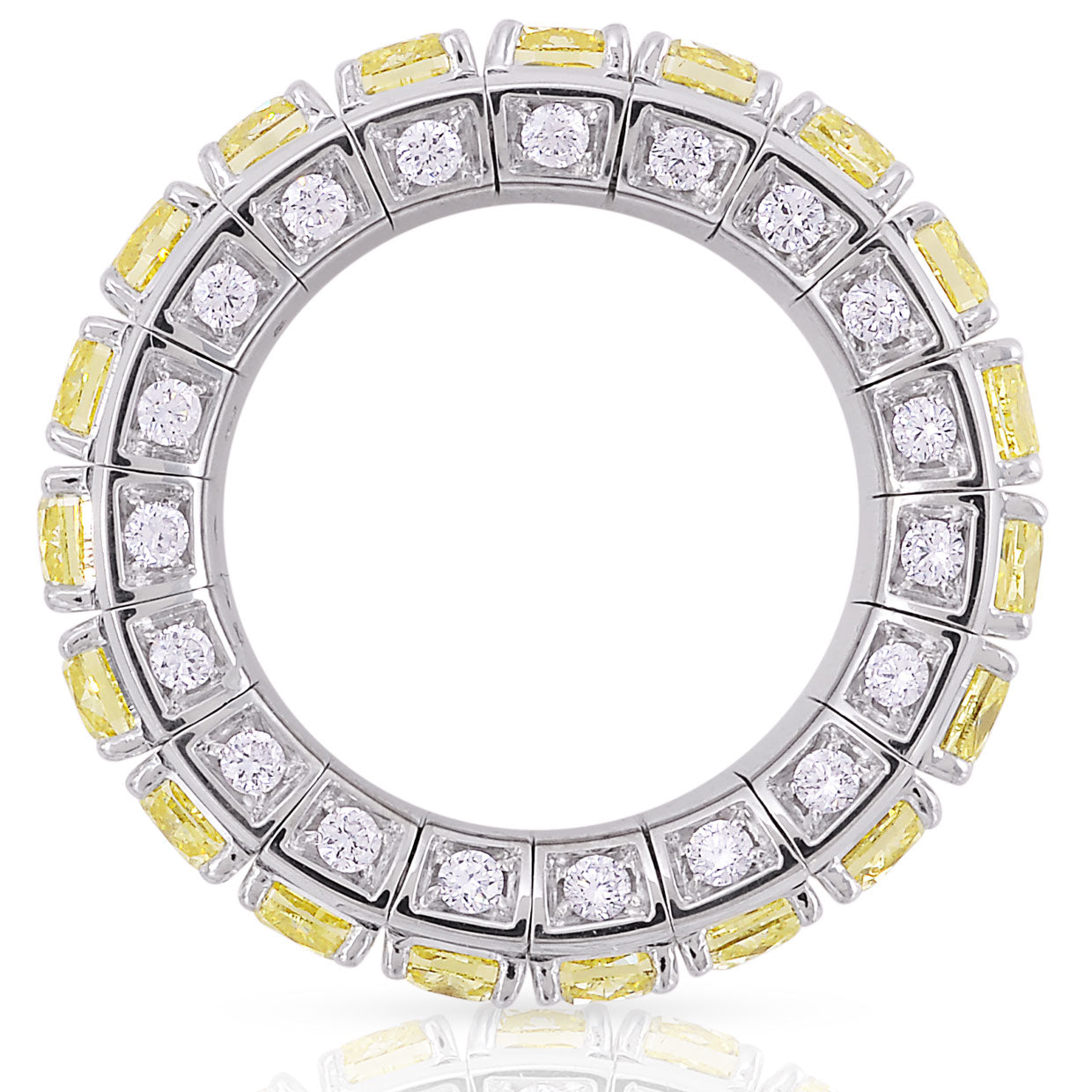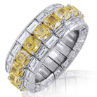Picchiotti - Xpandable™ Three Row Cushion Cut Yellow and White Diamond Eternity Ring in 18K Gold