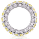 A magnificent blend of contemporary flair and timeless elegance, this Picchiotti Xpandable™ eternity ring showcases three luxurious rows of natural cushion cut fancy yellow and white diamonds. Expertly crafted in 18K gold, it offers the perfect balance of vibrant brilliance and wearable comfort. Thanks to Picchiotti’s signature expandable design, the ring adapts seamlessly to your finger for a flawless, fuss-free fit—today and always.