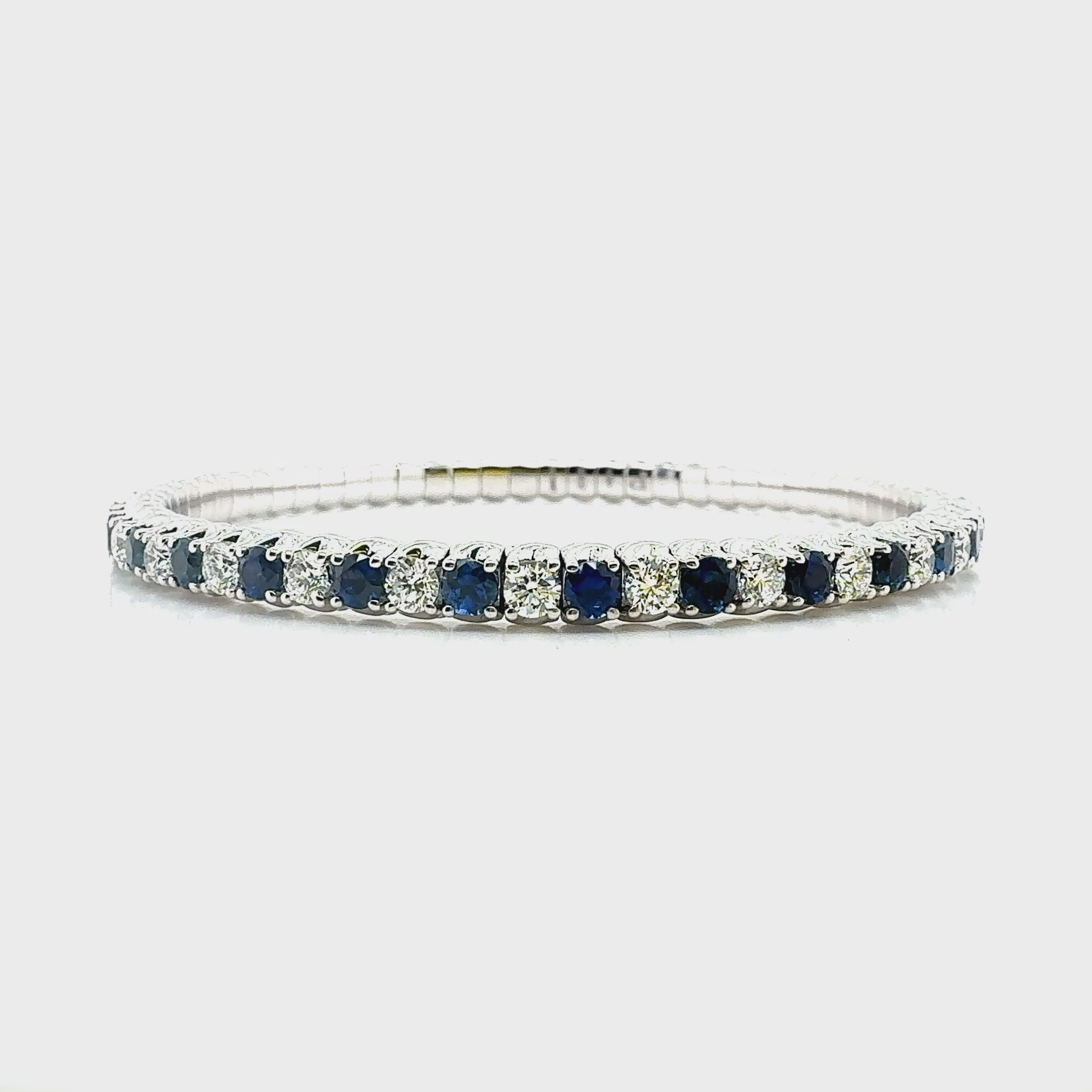 Effortless glamour that moves with you. This Xpandable™ bracelet flexes gently for a smooth, slip-on fit—no clasp, no fuss. Alternating sapphires and diamonds create a refined rhythm of color and light, elevating everything from everyday staples to evening looks.