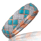 - Design: Bold contrast of diamonds and turquoise in a flexible bracelet