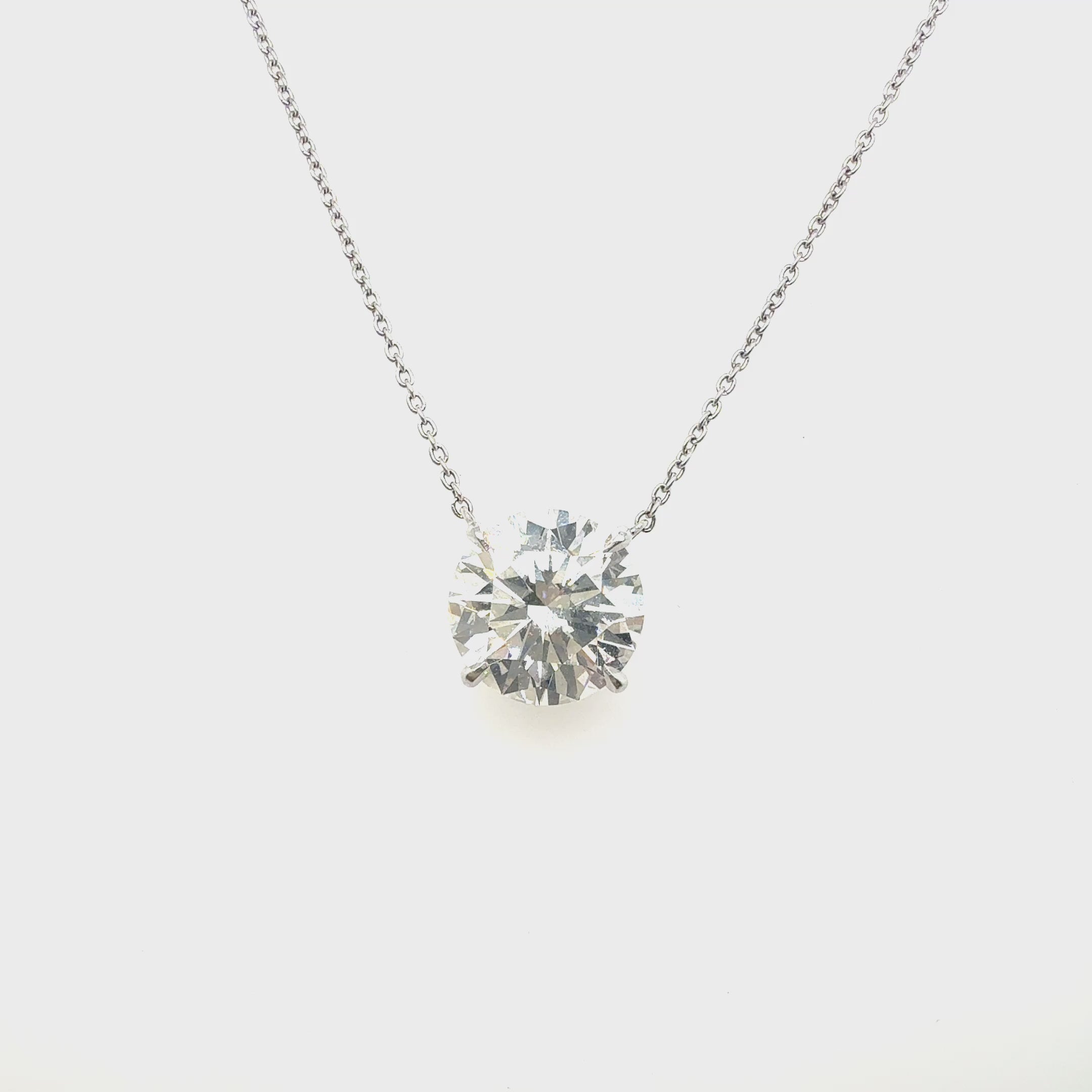 Elevate your elegance with this platinum pendant necklace, featuring a 3.03 ct round brilliant diamond (H color, VS1 clarity, GIA certified). Expertly cut with dimensions 9.40 x 9.44 x 5.67 mm and ideal proportions (60.2% depth, 59% table, excellent polish and symmetry), this prong-set diamond captures maximum brilliance. Suspended on a 16-inch platinum chain, it’s a timeless piece perfect for sophisticated everyday wear or special occasions.