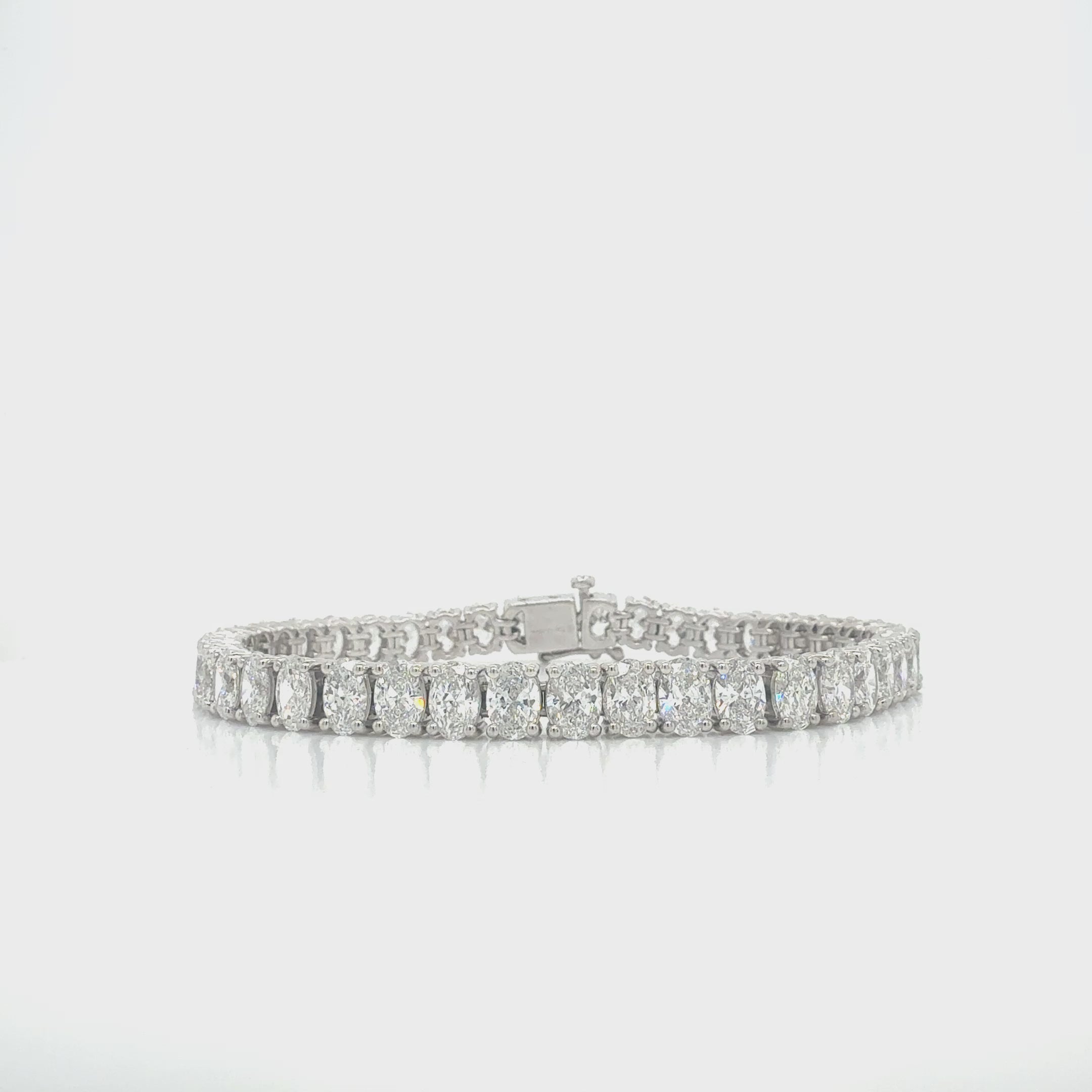 Elevate your style with this platinum straightline bracelet, featuring 43 certified D–F VVS1–VS2 oval diamonds totaling 13.46 CTTW in a classic prong-set design. Each diamond sparkles brilliantly, creating a continuous line of unmatched elegance and sophistication. Perfect for special occasions or as a standout everyday luxury piece.