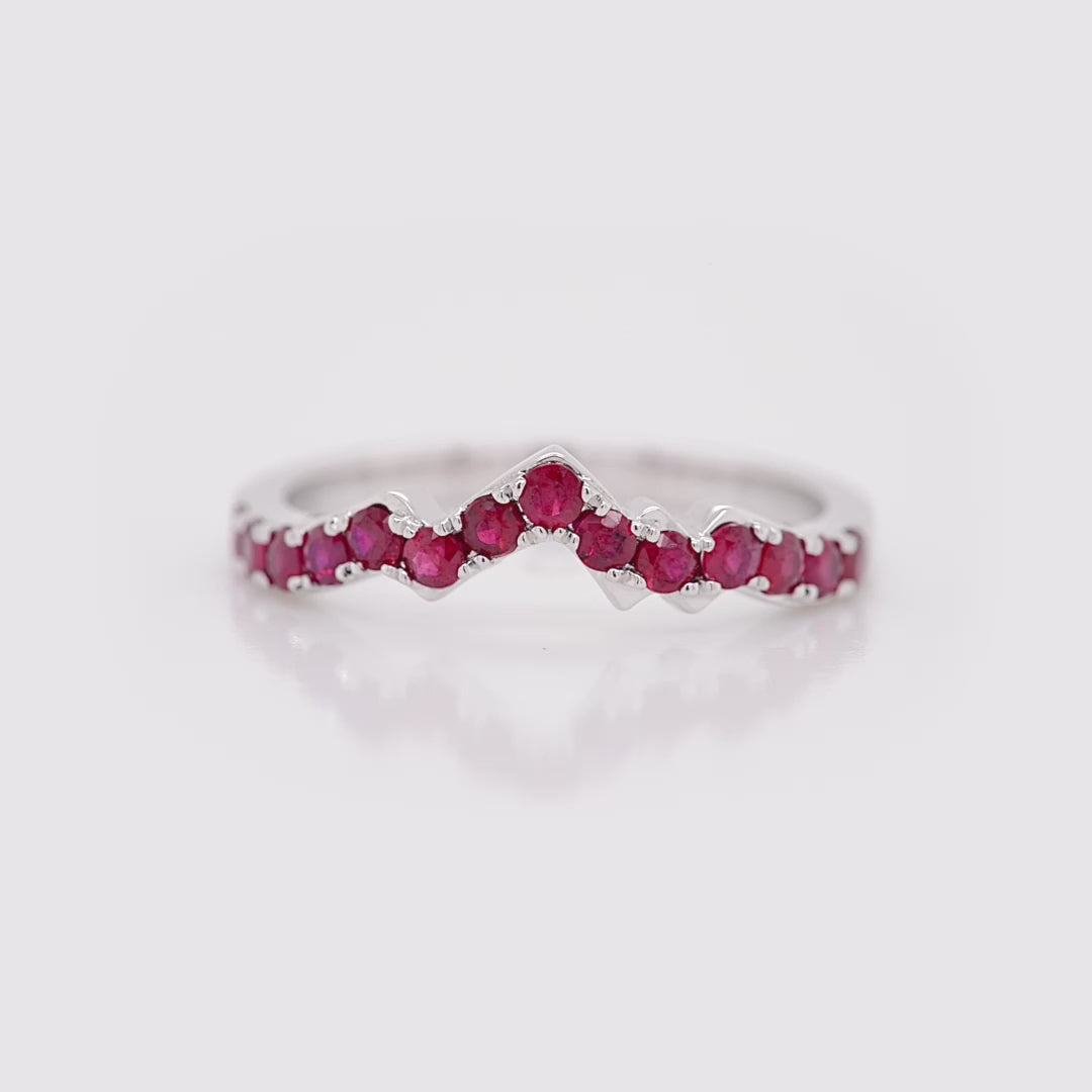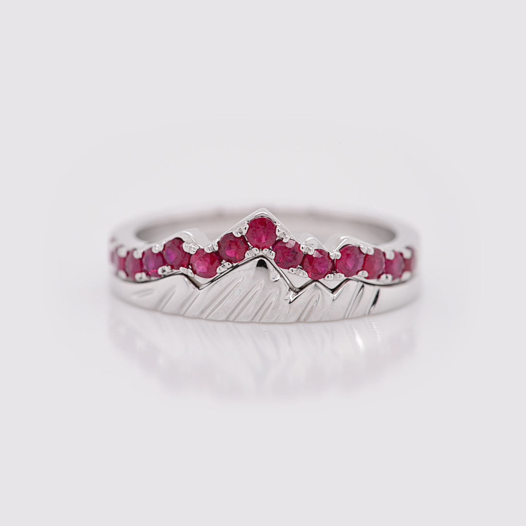 Celebrate bold elegance with the Teton Peak Ruby Outline Ring, crafted in 18K White Gold. Adorned with rubies totaling 0.58 ct, this mountain-inspired design captures adventurous sophistication, making it the perfect statement piece.